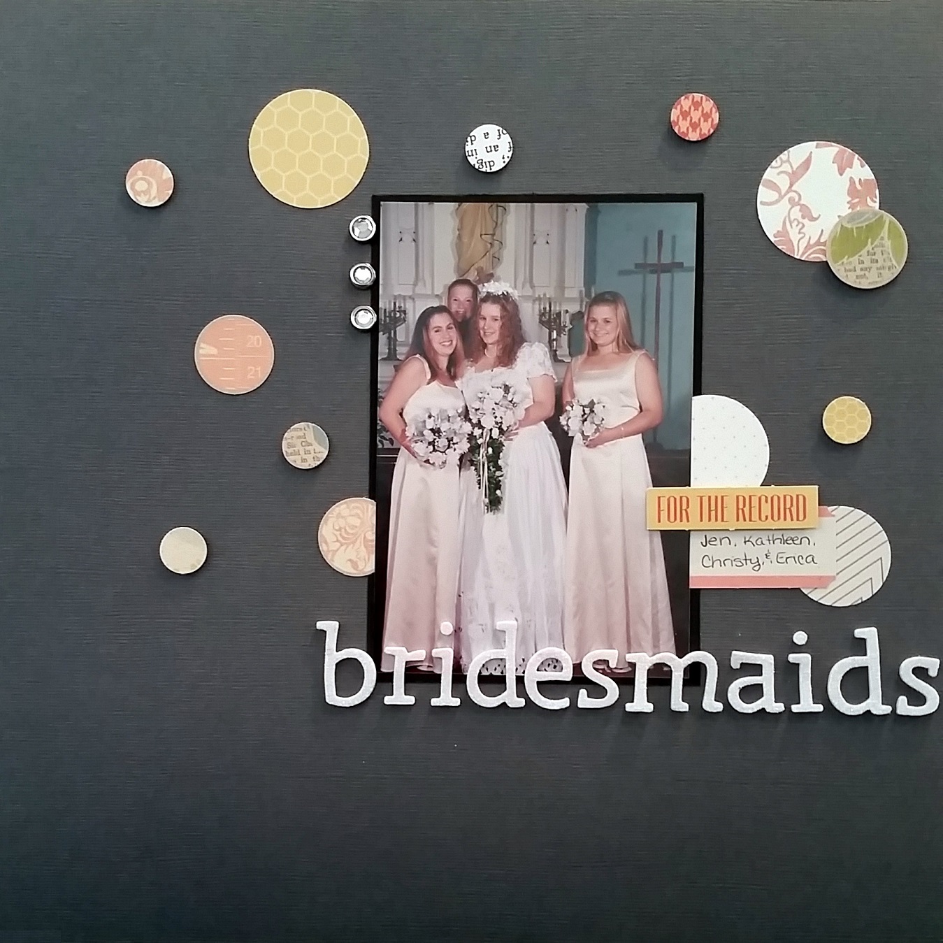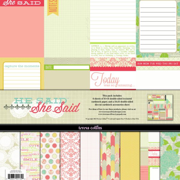 I created my layouts from my wedding photos. The He Said line was perfect for the Groomsmen shot and the She Said line was exactly matched for my photo with my Bridesmaids. And since the colors coordinate so well, they will work great as a side by side 2pager. Don't forget to check out the Memory Nest blog this month for more new to the design team creations made from kits available.